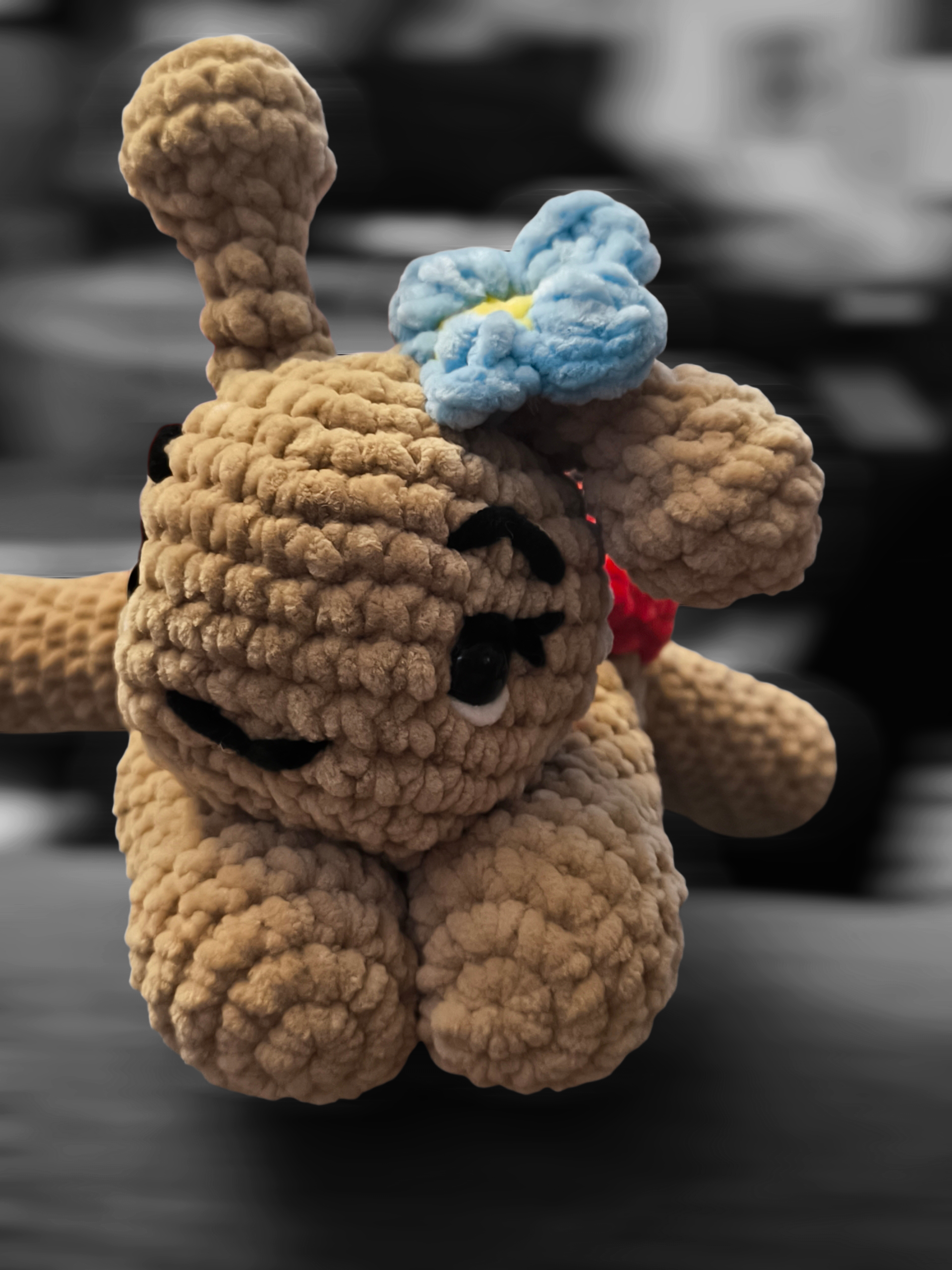 Ein kleines Blümchen auf dem Kopf verleiht ihm zusätzlich einen charmanten, verspielten Charakter – ideal als Geschenk zur Geburt, zum Geburtstag oder einfach als Glücksbringer zwischendurch.